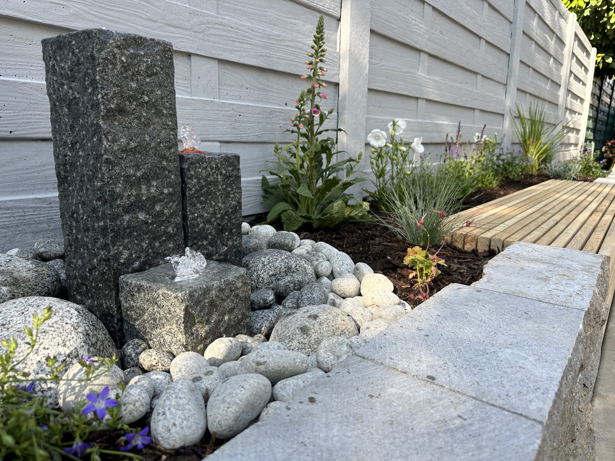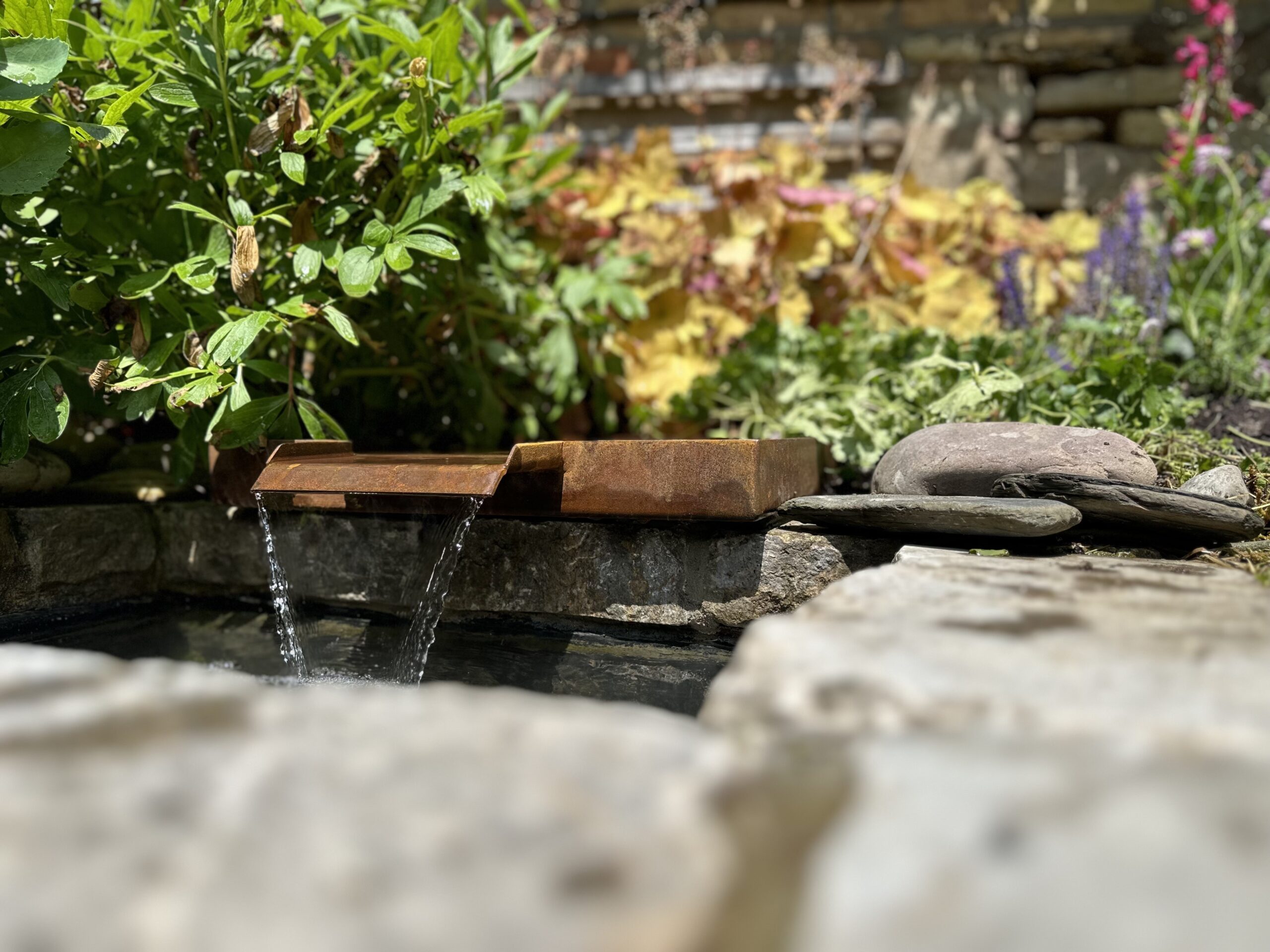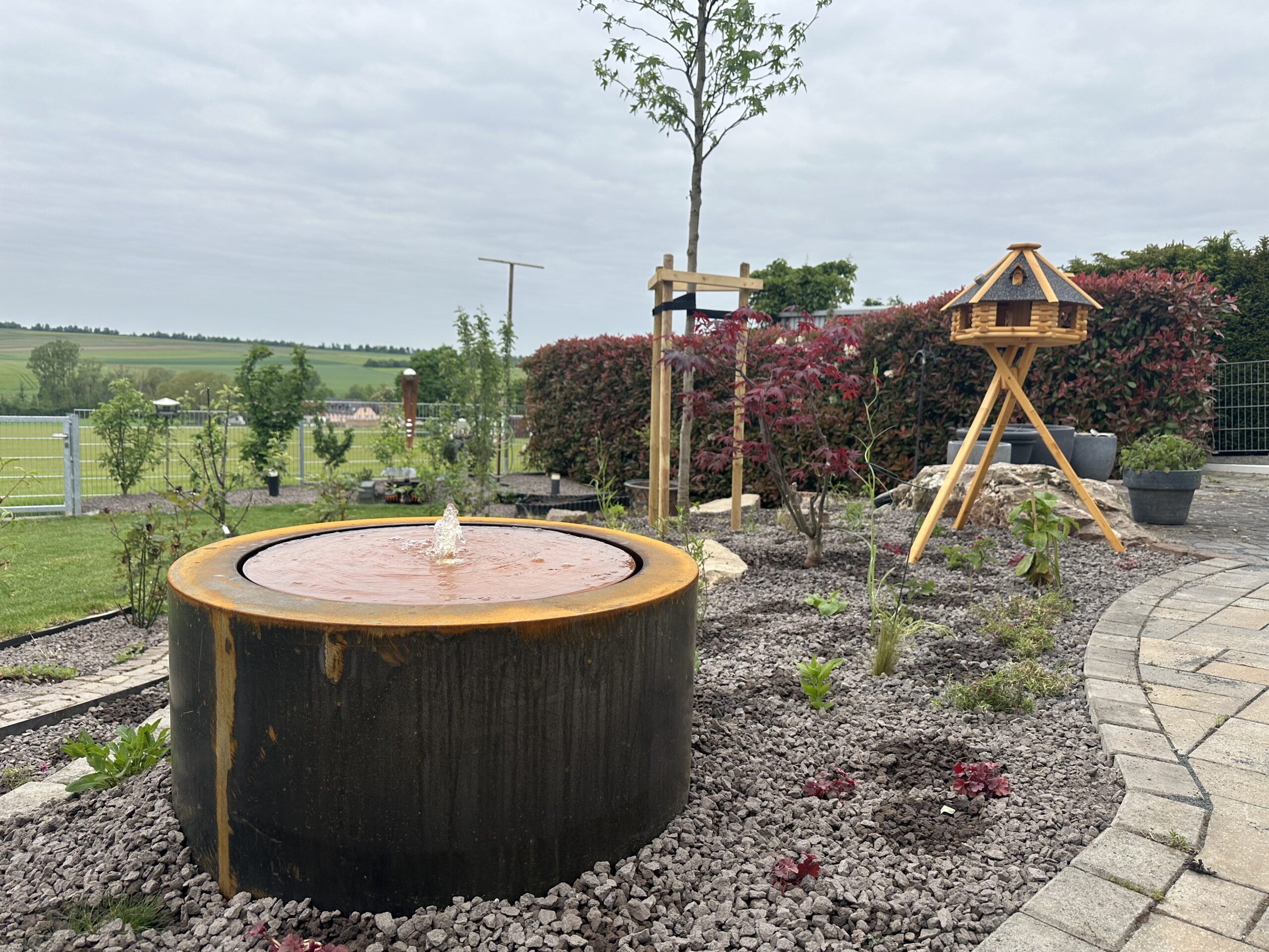 Es ist nicht nur ein optischer Hingucker, sondern schafft durch sein Plätschern und seinen Klang eine entspannte, beruhigende Atmosphäre. Gleichzeitig bietet Wasser einen wertvollen Lebensraum für verschiedene Kleintiere und Insekten.